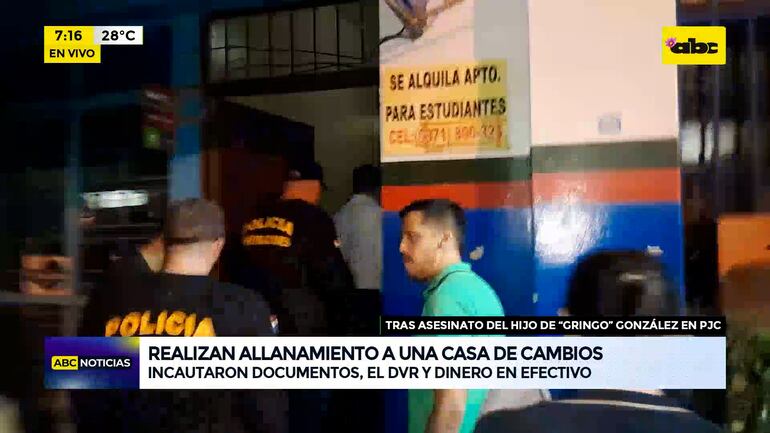 Este artículo tiene 2 años de antigüedad Realizan allanamiento a una casa de cambios tras el asesinato del hijo de “Gringo” González en PJC. Incautaron documentos, el DVR y dinero en efectivo