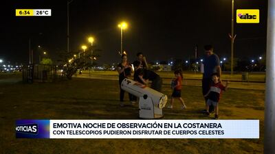 Este artículo tiene 2 años de antigüedad La “noche de observación” astronómica estuvo llena de emoción en la Costanera de Asunción. Una importante cantidad de ciudadanos lograron ver mediante los telescopios los cuerpos celestes que a simple vista no se pueden disfrutar a plenitud. Con los aparatos de observación astronómica apuntando al cielo, las personas pudieron tener un acercamiento a lo que hay más allá de la Tierra: la luna y los planetas. Llenos de emoción y curiosidad, especialmente los niños, se acercaban a mirar los cuerpos celestes.