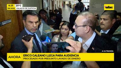 Este artículo tiene 2 años de antigüedad Se presentó el senador colorado cartista Erico Galeano Segovia para su audiencia de imposición de medidas, junto con su abogado defensor. Galeano está imputado por presunto lavado de dinero proveniente del narcotráfico y asociación criminal, en el marco de la causa “A Ultranza Py”.