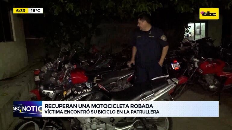 Este artículo tiene 2 años de antigüedad Una persona, sindicada como autor del robo de una motocicleta fue detenida e identificada como Lorenzo Gabriel Peralta Bogado, de 32 años, con tres antecedentes. Según el informe policial, Peralta Bogado estaba llevando una motocicleta a su costado cuando fue observado por la patrullera. Tras la consulta de rigor no pudo justificar la tenencia y por ello lo derivaron a la comisaría.