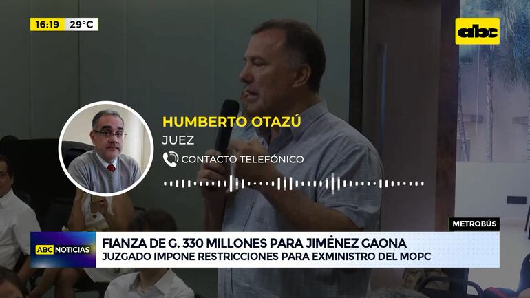 Este artículo tiene 2 años de antigüedad El juez de Garantías especializado en Delitos Económicos Humberto Otazú dispuso una fianza personal de G. 330 millones para el exministro de Obras Públicas y Comunicaciones Ramón Jiménez Gaona, quien tiene libertad ambulatoria en el proceso penal que afronta por presunta lesión de confianza en el caso metrobús.