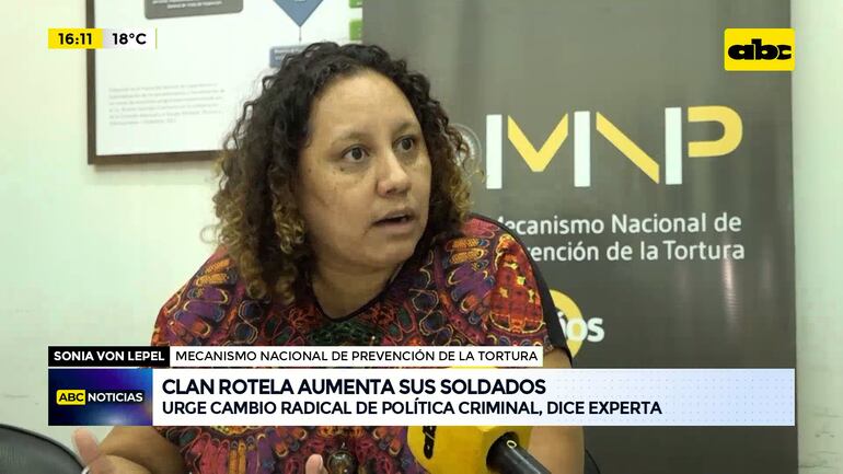 Este artículo tiene 2 años de antigüedad Un uso desmedido de la prisión preventiva, así como una política de drogas dura, favorece a que el Clan Rotela cada vez obtenga más soldados, según Sonia Von Lepel, comisionada del MNP.