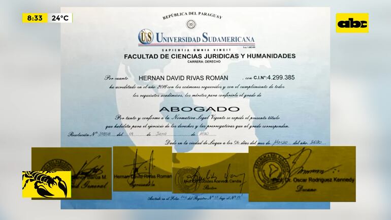 Este artículo tiene 2 años de antigüedad Bajo presión mostró su diploma de abogado de la Universidad Sudamericana y salieron a luz sospechosas inconsistencias. El senador cartista juró en el JEM y obtuvo diploma en el mismo día.