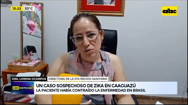 Este artículo tiene 2 años de antigüedad La Quinta Región Sanitaria maneja un primer caso sospechoso de zika en el departamento de Caaguazú. Se trata de una paciente de 31 años de edad del distrito de J. Eulogio Estigarribia, que días atrás tuvo un viaje al Brasil y al departamento de Guairá. La mujer presenta fiebres y dolor de cabeza, pero su estado no es de gravedad.