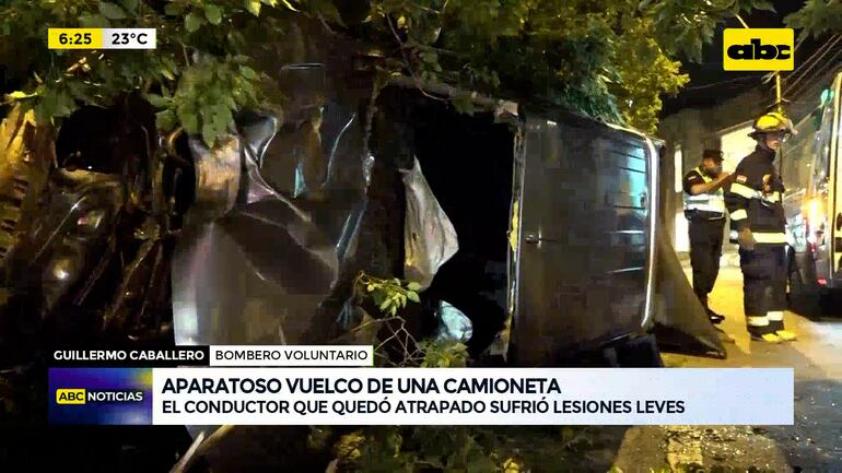 Este artículo tiene 2 años de antigüedad Un conductor quedó con lesiones leves tras un aparatoso accidente donde una camioneta Ford Ranger luego de llevar por delante un árbol tumbo en forma lateral. Aparentemente, la camioneta al mando de Osvaldo Ignacio Villamayor Cubilla de 69 años, iba a una velocidad alta, perdió el control en una pequeña curva sobre la avenida San Martín y Federación Rusa de Asunción y allí atropelló la planta de lapacho que se encontraba en el paseo central.