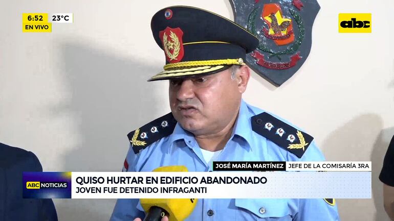 Este artículo tiene 2 años de antigüedad Joven fue detenido infraganti intentando hurtar en un edificio abandonado. “Emilio Rojas Aguilera (27) no es funcionario del ministerio, pero llama la atención que contaba con un manojo de llaves. Se constató que él estaba sacando objetos del edificio y trasladando a su vehículo”, expresó crio. José María Martínez.