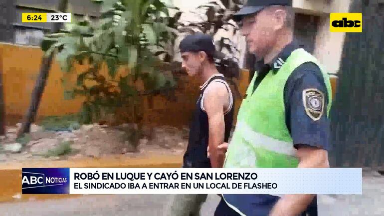 Este artículo tiene 2 años de antigüedad Un hombre que presuntamente había robado una notebook y tablet de un local comercial en Luque fue detenido en San Lorenzo. Se trata de Alan David Paredes Servián, de 28 años, y con antecedentes por hurto. Los agentes de la Comisaría Primera observaron que una persona iba a ingresar con una mochila en un local de flasheo en las inmediaciones del Mercado de San Lorenzo y eso llamó la atención de los policías.