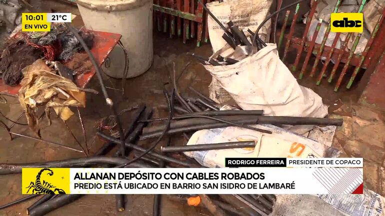 Este artículo tiene 2 años de antigüedad “El perjuicio económico en ingresos es de más de G. 1.300 millones mensuales”, expresó Rodrigo Ferreira, presidente de Copaco. Allanan depósito con cables robados en el Barrio San Isidro de Lambaré.
