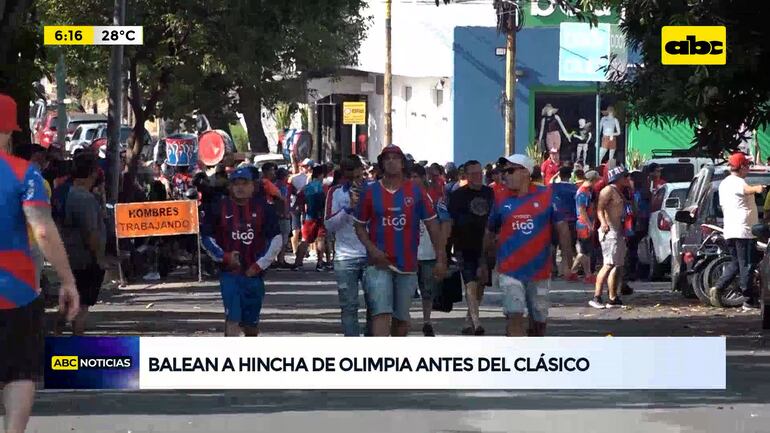 Este artículo tiene 2 años de antigüedad Un hincha de Olimpia, identificado como Cristian Andrés Brítez de 27 años fue herido de bala a la altura de la pelvis, lado izquierdo, presuntamente por hombre que sería aficionado de Cerro Porteño y la víctima ingresó a terapia intensiva tras la cirugía en el Hospital de Trauma. Según el reporte policial, desde varios vehículos se hicieron disparos de arma de fuego y uno de los proyectiles hirió al hombre que estaba en compañía de varias olimpistas antes del inicio del Clásico. El hecho ocurrió sobre la calle Caaguazú esquina Tte. Alcides González del barrio Nazareth de Asunción.