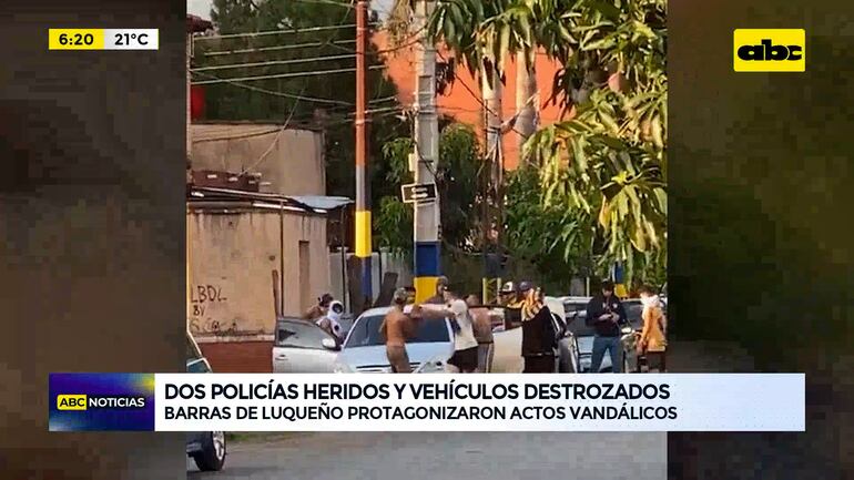 Este artículo tiene 2 años de antigüedad Policías heridos, vehículos destrozados, un barra brava detenido fueron el resultado del enfrentamiento entre hinchas de ambas facciones del Sportivo Luqueño contra los agentes del orden antes del inicio del encuentro entre el auriazul y Trinidense en los alrededores del estadio Feliciano Cáceres de Luque.