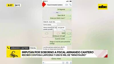 Este artículo tiene 2 años de antigüedad Los fiscales Diego Arzamendia y Osmar Legal imputaron al fiscal Armando Martín Cantero Fassino así como a otros más, por los hechos de cohecho pasivo agravado y soborno agravado. Según la hipótesis del Ministerio Público, el fiscal Cantero habría intermediado en una causa de Minotauro, en ese sentido, habrían recibido un bolígrafo valorado en G. 5.000.000 como “agradecimiento”.