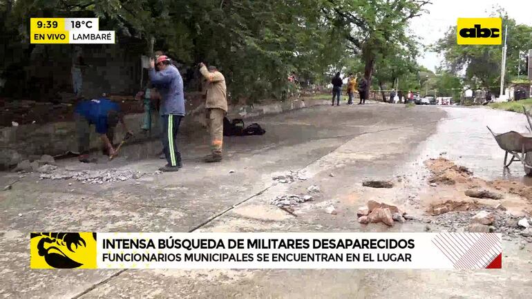 Este artículo tiene 2 años de antigüedad La búsqueda continúa este viernes de los dos sargentos primeros de las Fuerzas Armadas que desaparecieron ayer cuando su vehículo fue arrastrado al arroyo Lambaré por un fuerte raudal. Recién hoy, comuna realiza trabajos en la zona.