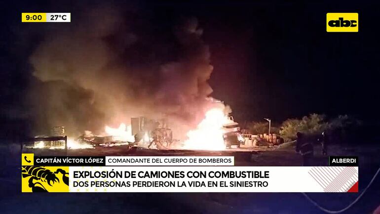 Alberdi: dos fallecidos tras explosión de camiones con combustible de contrabando