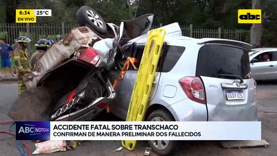 Este artículo tiene 2 años de antigüedad El fuerte choque se registró sobre la ruta Transchaco, frente al Jardín Botánico de Asunción. Según el informe preliminar de la Policía Nacional, el conductor de un automóvil Toyota modelo Premio, que viajaba con dirección a la ciudad de Mariano Roque Alonso, perdió el control de su rodado y pasó al carril contrario. En ese interín, otro vehículo modelo Ractis chocó de frente con el primero, ocasionando que quedara prácticamente destruido.