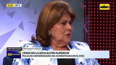 Este artículo tiene 2 años de antigüedad La presidenta de la Agencia Nacional de Evaluación y Acreditación de la Educación Superior (Aneaes), Dina Matiauda, afirmó que existen muchas carreras sin ser acreditadas en el país. Responsabilizó a la Ley 2529 del 2006 como la responsable de la apertura indiscriminada de universidad y carreras sin la calidad educativa. Recomendó que la fiscalía intervenga.