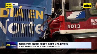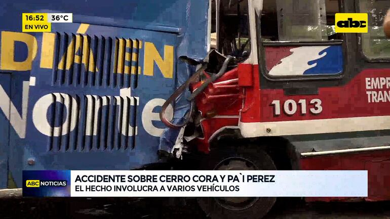 Este artículo tiene 2 años de antigüedad Se produjo un accidente sobre Cerro Corá y Pa’i Pérez, Asunción. Un bus chatarra perdió los frenos e impactó contra otros rodados. Policía reporta varios heridos, todos ya derivados a centros asistenciales.