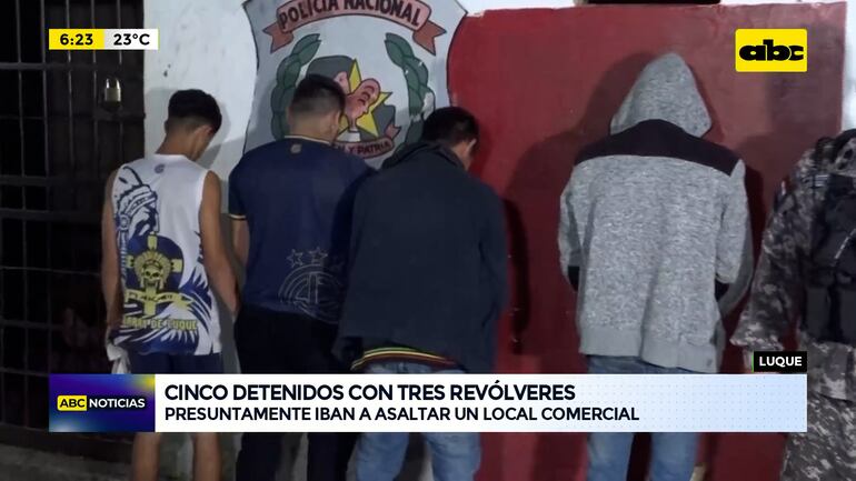 Este artículo tiene 2 años de antigüedad Cinco hombres de los cuales uno es un adolescente de 14 años fueron detenidos y presuntamente tenían la intención de asaltar un local comercial en el Cuarto Barrio de Luque. Tras una persecución, los policías lograron interceptar un automóvil Toyota Platz y dentro del mismo había tres revólveres, dos de calibre 22 y uno de calibre 38, un machete y un cuchillo de cocina.