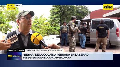 Este artículo tiene 2 años de antigüedad La “Reyna” de la cocaína peruana ya está en la Senad. Fue detenida en el Chaco paraguayo. “Es una persona de muy alto perfil dentro del narcotráfico regional. Estaba residiendo en Bolivia en base a ciertas disputas que tenía con clanes peruanos antagónicos. Entendemos que estaba estableciendo contacto con organizaciones paraguayas”, Francisco Ayala, director de Comunicaciones de la Senad.