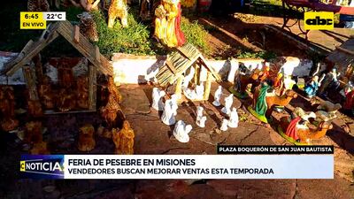 Este artículo tiene 2 años de antigüedad Vendedores de pesebres vienen a exponer sus productos en la plaza Boquerón de la capital de Misiones desde la ciudad de Areguá. Vendedores buscan mejorar ventas esta temporada.