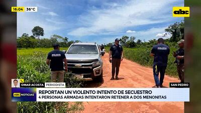 Este artículo tiene 1 año de antigüedad Dos colonos menonitas se salvaron de un presunto intento de secuestro en la Colonia de Yaguarete Forest, ciudad de Santa Rosa del Aguaray, departamento de San Pedro. Aproximadamente, cuatro personas armadas intentaron retenerlos y rociaron a balazos la camioneta. Se salvaron al correr hacia una zona boscosa. El intento de secuestro se registró cerca de las 11:50, según reportó el puesto policial N° 8 de la Colonia Yaguarete Forest de San Pedro. Resultaron víctimas dos jóvenes de la comunidad menonita, que se encontraban saliendo de la Estancia Paetzold – La Negrita de Yaguarete Forest.