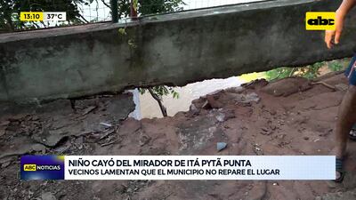 Este artículo tiene 1 año de antigüedad Un niño se salvó de manera milagrosa luego de caer del mirador de Itapytãpunta que se encuentra en ruinas desde hace un año, según lamentan los vecinos. El menor de seis años fue rápidamente socorrido y trasladado al Hospital del Barrio Obrero por un golpe y corte en la cabeza.