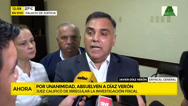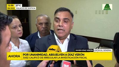 Este artículo tiene 2 años de antigüedad El Tribunal Colegiado de Sentencia, presidido por el juez Víctor Alfieri e integrado por Alba González y Darío Báez, resolvieron absolver de culpa y reproche del hecho punible de enriquecimiento ilícito al ex fiscal general del Estado Francisco Javier Díaz Verón y a su esposa María Selva Morínigo, por el hecho de lavado de dinero, a quienes la fiscalía acusó y pidió la aplicación de penas de 8 y 5 años, respectivamente.