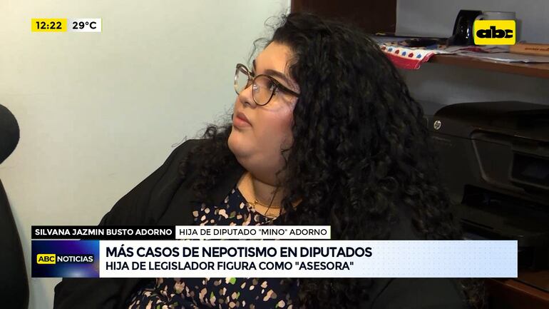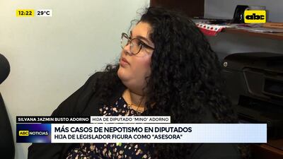 Este artículo tiene 1 año de antigüedad Silvana Jazmín Busto Adorno, hija del diputado José Domingo “Mino” Adorno, negó estar cumpliendo funciones de “asesora”, pero aseguró estar trabajando en la Cámara de Diputados como “encargada de despacho”. Justificó su propia contratación alegando que su padre la designó dentro de un “cargo de confianza”. La joven de 23 años dijo que estudia Ingeniería Comercial, carrera que, según admitió, nada tiene que ver con la función que desempeña en la Cámara Baja.