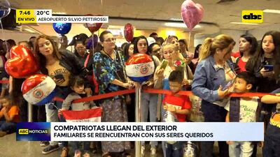 Este artículo tiene 2 años de antigüedad Carteles con expresiones de cariño y de bienvenida, globos, flores y abrazos esperaron a los connacionales que llegaban al Aeropuerto Internacional Silvio Pettirossi. La mayoría retornó de España y Estados Unidos para compartir los festejos por el Año Nuevo con sus seres queridos.