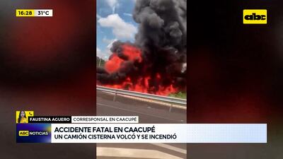 Este artículo tiene 1 año de antigüedad Este martes se registró un accidente de tránsito en cercanías de la rotonda de Caacupé. Los datos preliminares detallan una persona fallecida, quien sería el conductor del camión cisterna que volcó y se incendió.