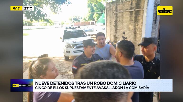 Este artículo tiene 2 años de antigüedad Un total de nueve personas fueron detenidas en la Comisaría 23 de Zeballos Cue por un caso de robo domiciliario. Tres de ellas como presuntos autores del robo (Juan David Moreira, Julio César Ozorio Ruiz y Rodolfo Herimar Benítez Gauto), una por ser sindicado como reducidora y cinco por supuestamente avasallar la oficina de guardia de la Comisaría, por ir a reclamar la detención del presunto reducidor identificado como Tomás Escurra Cárdenas quien entregó una amoladora que había comprado.