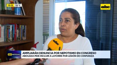 Este artículo tiene 2 años de antigüedad La abogada Teresa Flecha adelantó que ampliará la denuncia presentada la semana pasada en contra del presidente del Congreso, el senador Silvio “Beto” Ovelar, por tráfico de influencias. Según indicó, incluirá al presidente de la Cámara de Diputados, Raúl Latorre, por presunta lesión de confianza y a los “nepobabies” contratados por cobro indebido de honorarios.
