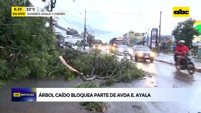 Este artículo tiene 1 año de antigüedad Los fuertes vientos registrados durante el temporal esta madrugada ocasionaron la caída de un gran árbol ubicado al costado de la avenida Eusebio Ayala, casi Cedro, a pocos metros de un conocido supermercado mayorista. Las ramas ocupan dos carriles de salida de la ciudad de Asunción.
