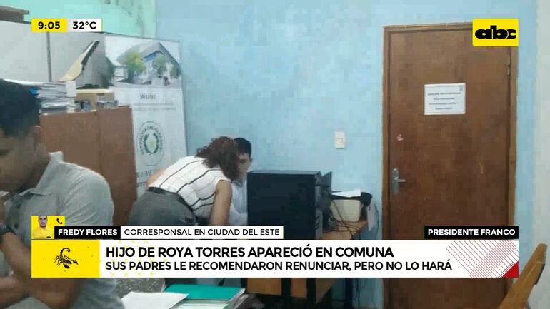 Este artículo tiene 2 años de antigüedad Elías Godoy Torres es “asesor” de su madre, la diputada Roya Torres. Terminó el colegio hace apenas unos meses y percibe un salario de G. 9.500.000. Días atrás, Torres afirmó que él renunciaría a su cargo en Cámara Baja. Hoy, Godoy dijo que no renunció porque “no está cometiendo ningún delito”.