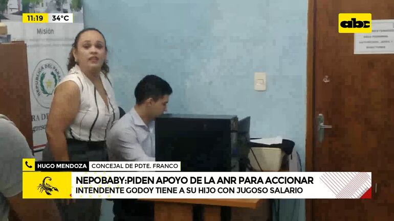 Este artículo tiene 2 años de antigüedad El hijo de la Diputada esta “haciendo oficina” en la Municipalidad de Presidente Franco. ”Nuestro director de finanzas gana G. 3.500.000 y nosotros tenemos que recibir a alguien que gana G. 9.500.000″, dijo el concejal Hugo Mendoza.