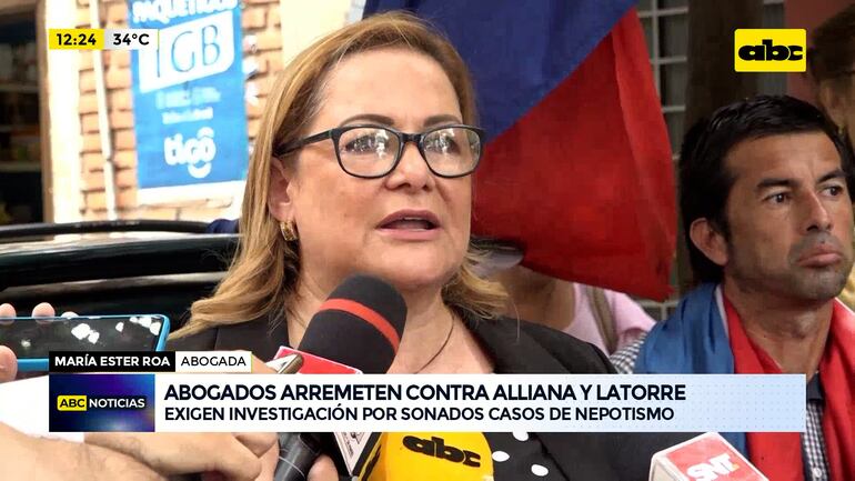 Este artículo tiene 2 años de antigüedad Los abogados Jorge Rolón Luna y María Ester Roa, en compañía de miembros de la organización “Somos Anticorrupción”, llegaron a la sede del Ministerio Público para presentar denuncia en contra del vicepresidente de la República, Pedro Alliana, el presidente de la Cámara de Diputados, Raúl Latorre, y otros. Guarda relación con el sonado caso de los “Nepobabies” en el Congreso Nacional.
