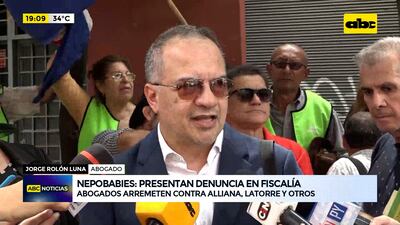 Este artículo tiene 2 años de antigüedad Los abogados Jorge Rolón Luna y María Ester Roa, en compañía de miembros de la organización “Somos Anticorrupción” llegaron a la sede del Ministerio Público para presentar denuncia en contra del vicepresidente de la República, Pedro Alliana, el presidente de la Cámara de Diputados, Raúl Latorre y otros. Guarda relación con el sonado caso de los “Nepobabies” en el Congreso Nacional.