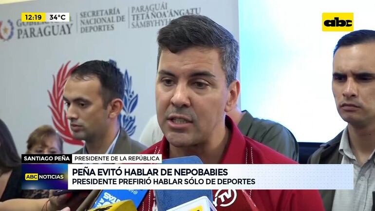 Este artículo tiene 2 años de antigüedad Santiago Peña no quiso hablar de los ‘’Nepobabies’' en el Congreso Nacional. El presidente, quien se encontraba en un acto en la Secretaría Nacional de Deportes, se limitó a responder sólo preguntas de índole deportivo.