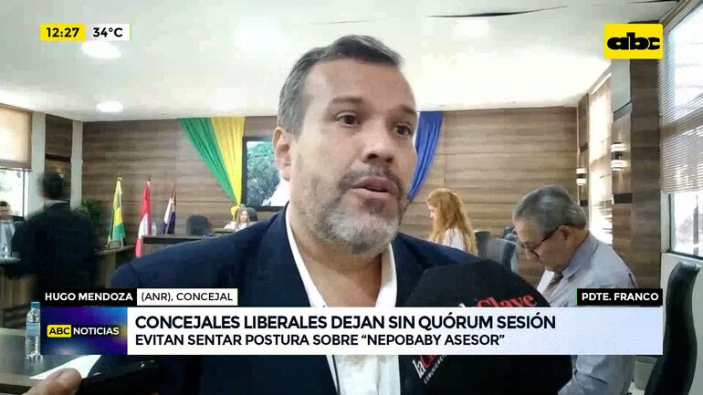 Este artículo tiene 1 año de antigüedad Para no pronunciarse sobre el “nepobaby asesor” Elías Martín Godoy Torres, quien se encuentra refugiado en la Municipalidad administrada por su padre, Roque Godoy Jara, los concejales de la bancada del PLRA dejaron sin quorum la sesión de la Junta Municipal de este martes. En una minuta, los concejales de la bancada colorada plantearon un pronunciamiento institucional de la Junta Municipal con relación a Elías Martín.