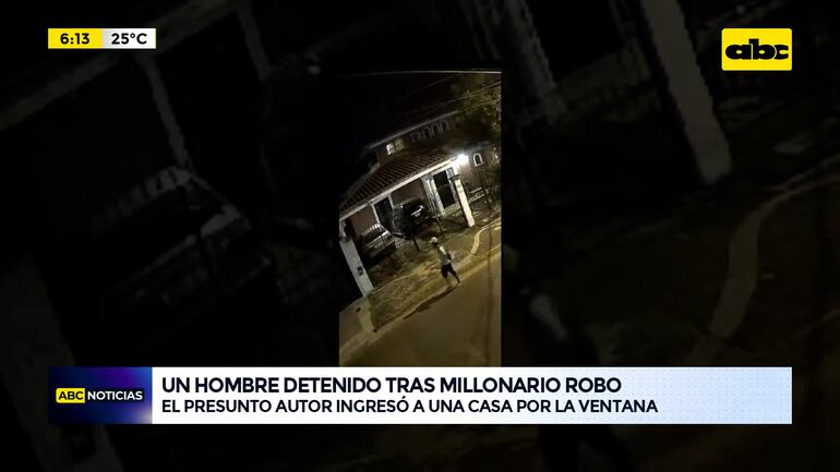 Este artículo tiene 1 año de antigüedad Un hombre sindicado de robar unos 94 millones de guaraníes de una vivienda que funciona también como local comercial fue detenido e identificado como Víctor Daniel Sosa Martínez de 30 años. Se pudo recuperar al menos cerca de 38 millones de guaraníes del poder del sospechoso quien se encontraba en el Bañado Tacumbú.