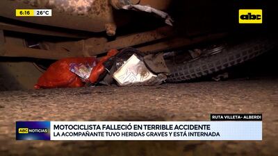 Este artículo tiene 1 año de antigüedad Un motociclista identificado como Saturnino Servín Cubilla de 76 años falleció tras un terrible accidente de tránsito y su pareja Teresa Beatriz Ayala de 39 años quien iba como acompañante resultó con heridas graves tras el percance y fue derivada a un centro asistencial. El fatal siniestro se produjo sobre la ruta que une Villeta con Alberdi, casi frente a la entrada de la empresa CAIASA.