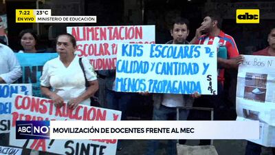 Este artículo tiene 1 año de antigüedad Docentes agremiados en el Sindicato Nacional de Trabajadores de la Educación se manifiestan este miércoles frente a la sede del Ministerio de Educación y Ciencias, en el centro de Asunción, con reclamos que incluyen la falta de asistencia con problemas de infraestructura, la mala calidad de kits escolares y la insuficiencia de rubros para docentes, entre otras preocupaciones