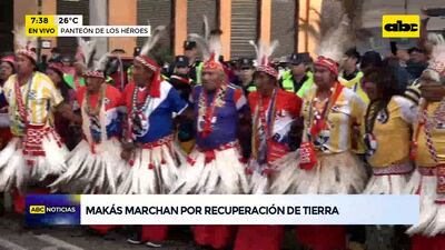 Este artículo tiene 1 año de antigüedad Indígenas del pueblo maká se movilizan en el microcentro de Asunción para exigir la recuperación de más de 300 hectáreas de tierra. La comunidad reclama la recuperación de 335 hectáreas de tierra frente a Zevallos Cue y el Jardín Botánico.