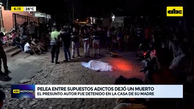 Este artículo tiene 2 años de antigüedad Una pelea entre supuestos adictos a estupefacientes dejó a uno de ellos muerto. La víctima fatal recibió una estocada a la altura del cuello y falleció en el mismo lugar. El hecho se registró en el barrio La Conquista, de Reducto, San Lorenzo.