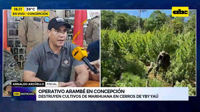 Este artículo tiene 1 año de antigüedad La Dirección de la Policía Nacional en Concepción, de Investigaciones, de Antinarcóticos, de la Unidad Táctica y de Inteligencia ejecutan el operativo Arambé en Concepción, que busca destruir cultivos de marihuana ubicados estratégicamente en los cerros de la zona del distrito de Yby Yaú, límite con Amambay.