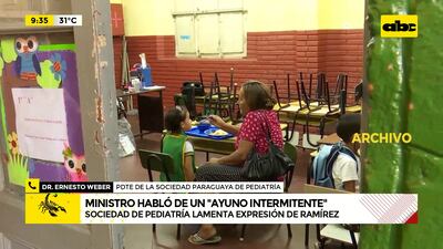 Este artículo tiene 1 año de antigüedad El doctor Ernesto Weber, presidente de la Sociedad Paraguaya de Pediatría, hizo alusión a las expresiones del ministro del MEC sobre “ayuno intermitente” en niños. “El ayuno intermitente es una estrategia que usa gente de mayor edad que quiere perder peso. Pero, tampoco es una recomendación que se pueda dar a la ligera a cualquier persona. No está contemplado en ningún protocolo de alimentación que los niños hagan ayuno intermitente. indicó.