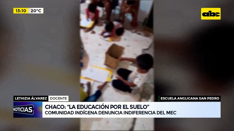 Este artículo tiene 1 año de antigüedad Una docente de la comunidad indígena Makxawaya, ubicado en el departamento de Presidente Hayes, Chaco, viralizó un video en el que muestra alumnos del preescolar y del primer grado de la Escuela Básica 1.241 “Anglicana San Pedro” dando clases en el piso, en pésimas condiciones y sin un mínimo de mobiliario desde hace más de un año.