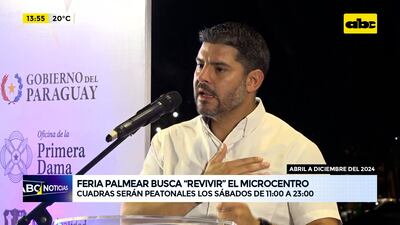 Este artículo tiene 1 año de antigüedad La feria Palmear busca “revivir” el microcentro. Cuatro cuadras serán peatonales los sábados de 11:00 a 23:00 de abril a diciembre del 2024. El lanzamiento estuvo a cargo de la primera dama, Leticia Ocampos, quien anunció oficialmente la iniciativa de la Feria Palmear. También estuvo presente el intendente de Asunción, Óscar Rodríguez.