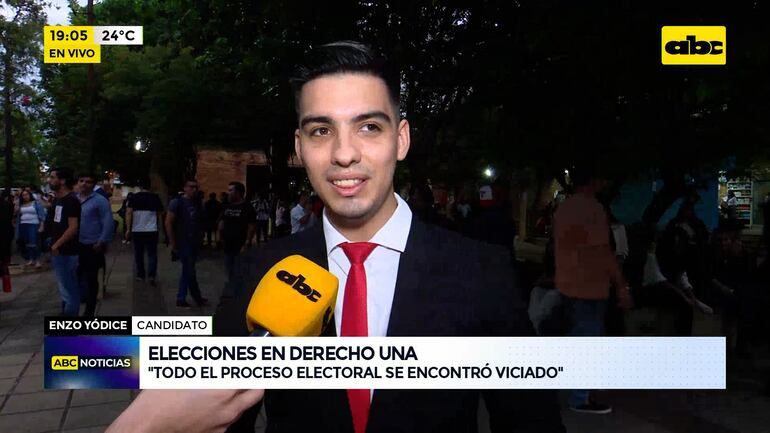 Este artículo tiene 1 año de antigüedad “Todo el proceso electoral se encontró viciado”, expresó Enzo Yódice, candidato a presidente del Centro de Estudiantes. Los que están en carrera por lograr el cargo del presidente de la CEDUNA son Enzo Yódice y Alejandro Ovelar, hijo del senador Silvio “Beto” Ovelar.