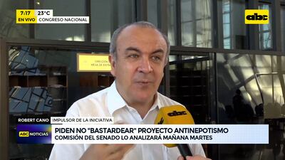 Este artículo tiene 1 año de antigüedad Tres proyectos de leyes que se encuentran en el Congreso Nacional, deben de ser analizados por la Comisión del Senado mañana martes. El impulsor de la iniciativa Robert Cano presentará una nota al presidente del congreso Ovelar y el presidente de la comisión de legislación (Maidana), pidiendo la postergación de tratamiento de los referidos proyectos hasta tanto sean convocados.