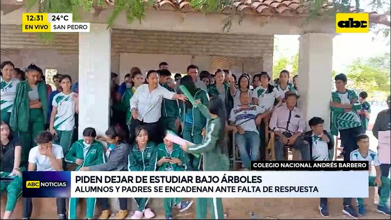 Este artículo tiene 2 años de antigüedad La comunidad educativa del colegio Nacional Andrés Barbero del distrito de San Pedro de Ycuamandyyú se moviliza por segundo día para repudiar la corrupción y tomó el local para exigir aulas y sanitarios. En la institución quedó inconclusa y abandonada la construcción de un aula, que figura como concluida en la Municipalidad.